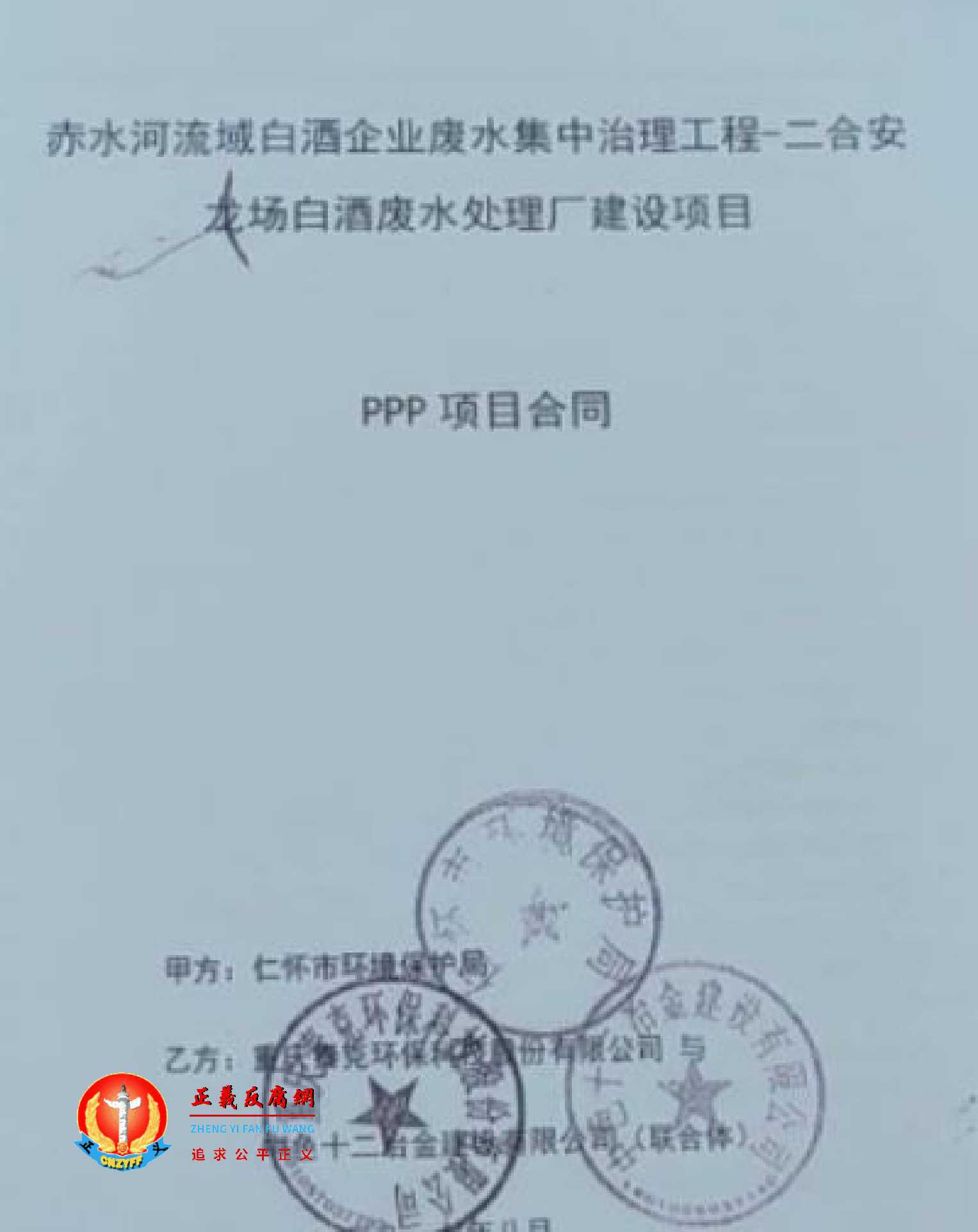 ▲赤水河流域白酒企业废水集中治理程﹣二合安龙场白酒废水处理厂建设项目《PPP项目合同》(图片来源:视频截图)