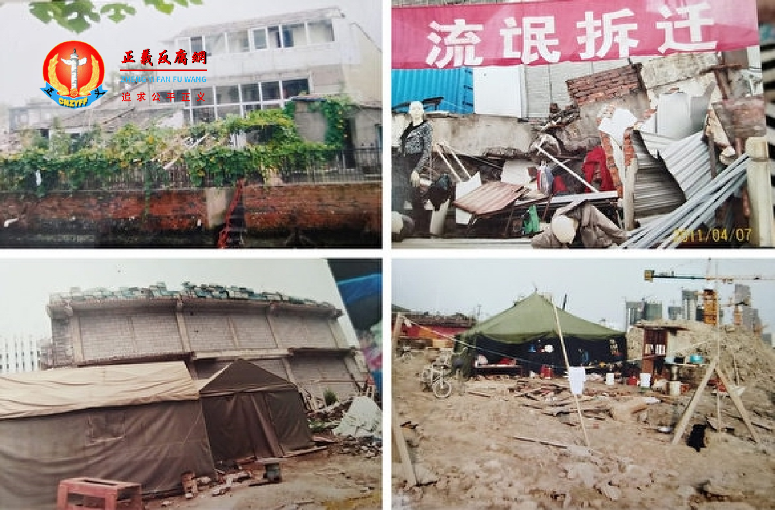宋女士和其他失去家园的几户人家又买了帐篷,长期在原住址守侯,她们打出横幅,怒拆“流氓拆迁”。也多次被黑社会殴打。